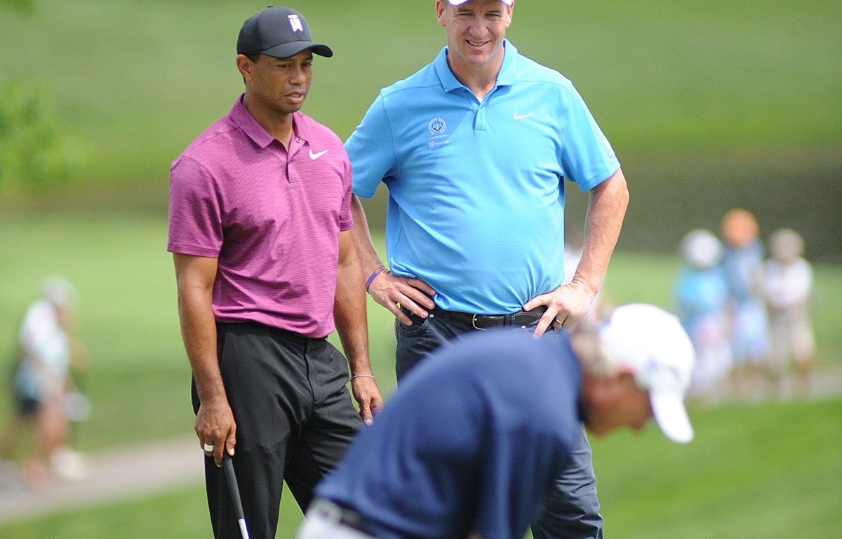 Woods, a five-time winner of the PGA event at Muirfield Village, was matched up with Super Bowl champion Peyton Manning Wednesday as he prepared for his 16th Memorial.