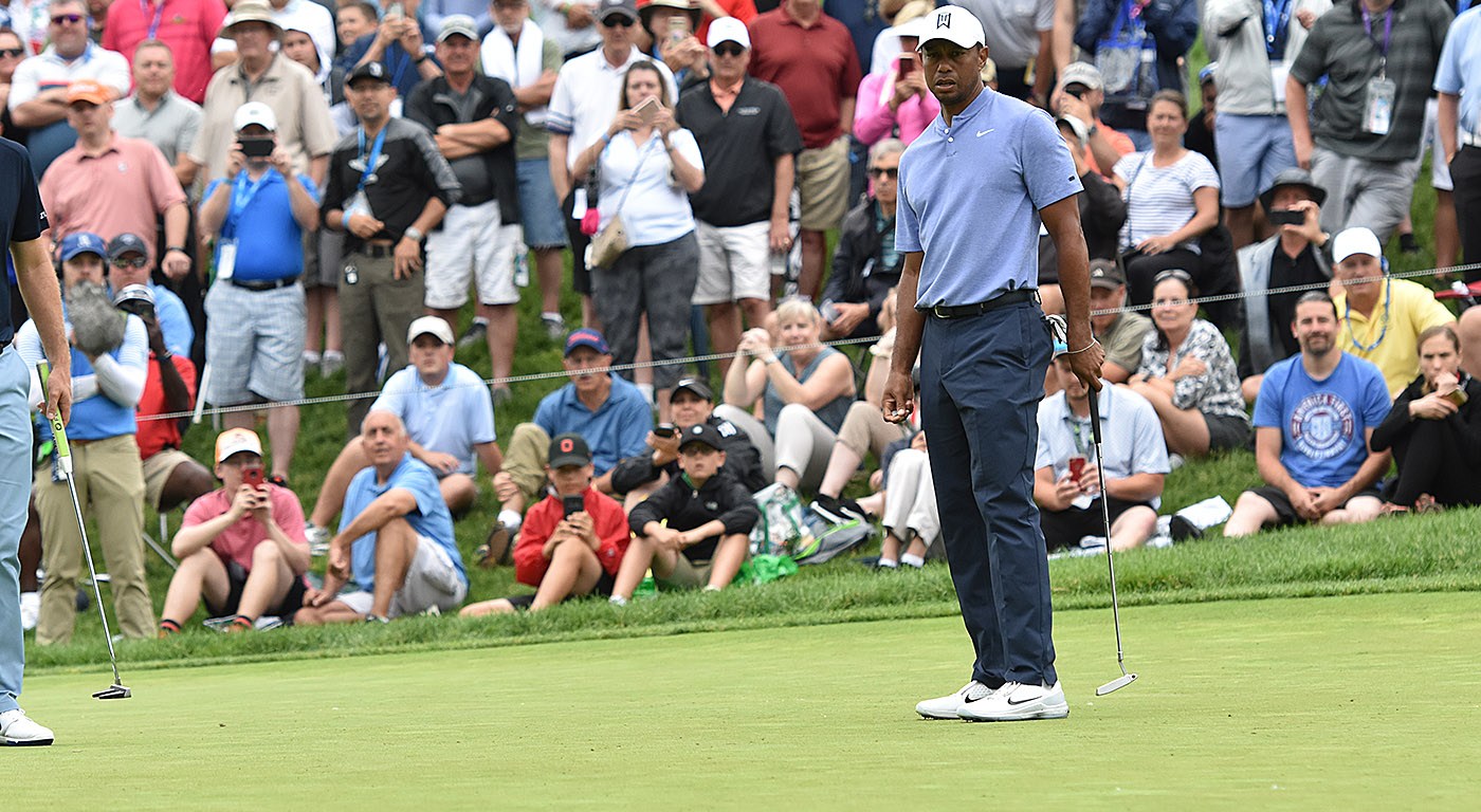 Sitting at 2-under, the same first-round score he had when he won his fifth Memorial in 2012, Tiger Woods put together a solid round despite his group being warned about slow play and put on the clock over the last eight holes.
