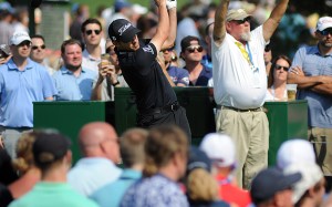 Patrick Cantlay tees off on No. 15.