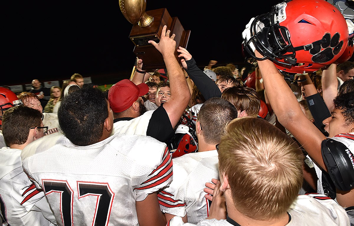 The Tigers claim the KNB Backyard Brawl Trophy after last year’s inaugural game went to the Braves when they stopped the Tigers from scoring in the closing seconds.
