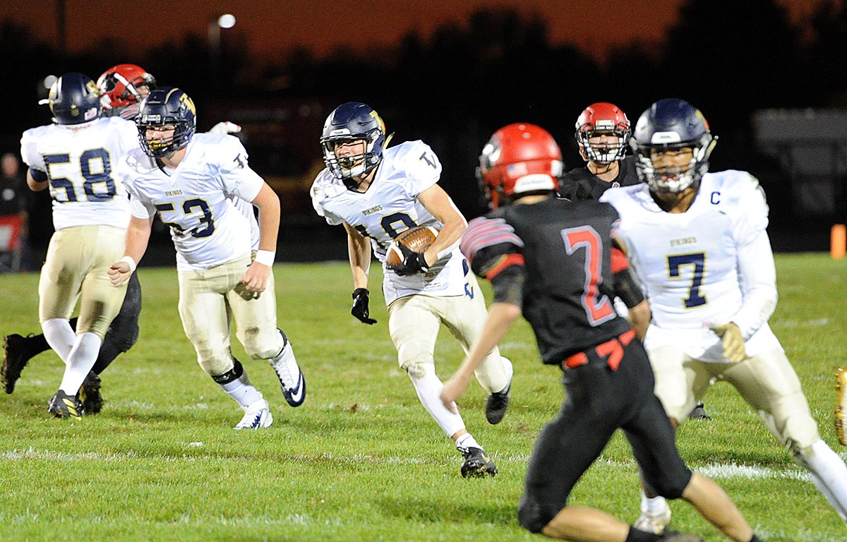 The Vikings added to their total with a 75-yard scoring run from Weiss, a 28-yard run from McDanel and a 45-yard run from Weiss to build their lead.