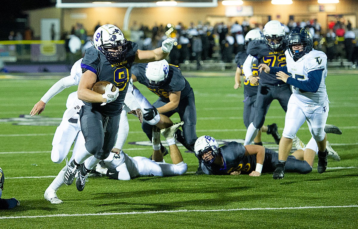 The Bulldogs controlled the game up front rushing 37 times for 196 yards and senior quarterback Otto Kuhns (headed to Div. I Eastern Illinois to continue his football career) was 15-20 passing for another 113 yards.