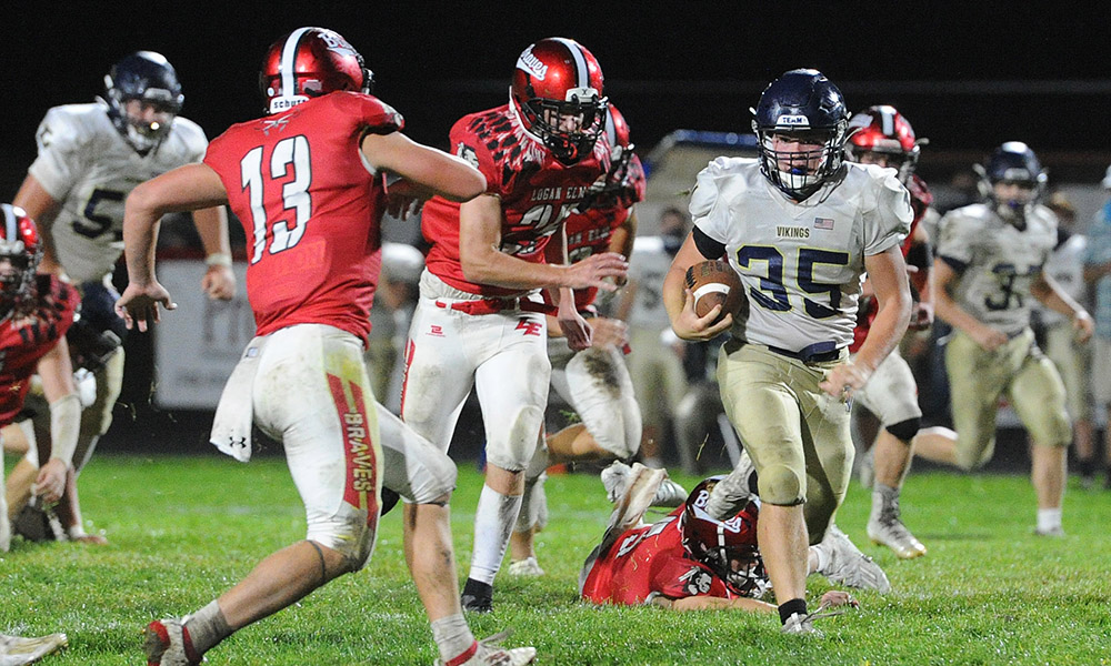 Logan Elm’s run game was held to 29 yards, but the Braves’ Conner Robinson threw for 286 yards in the contest. Jason Sailor had 107 yards receiving on seven catches while David Evans had 81 yards on five grabs and Gabe Chalfin had 77 yards on seven catches.
