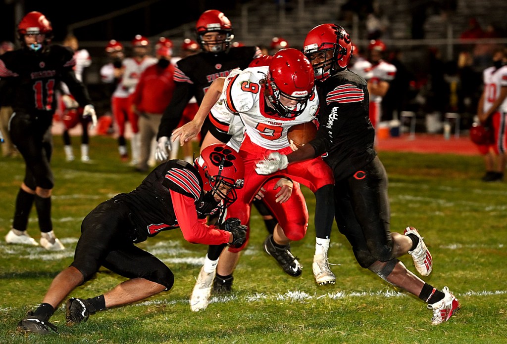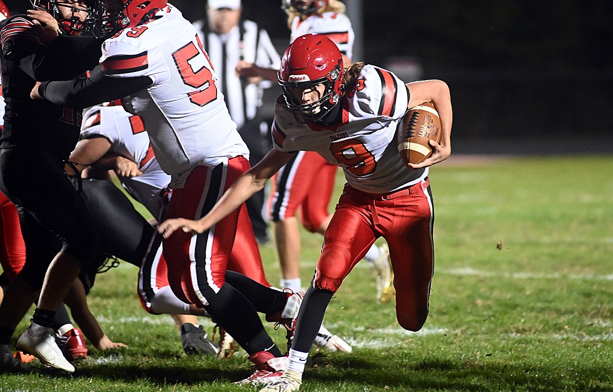 Hayden Collins ran for three touchdowns as Fairfield Union amassed 374 rushing yards in a 35-14 win over Circleville Friday night.